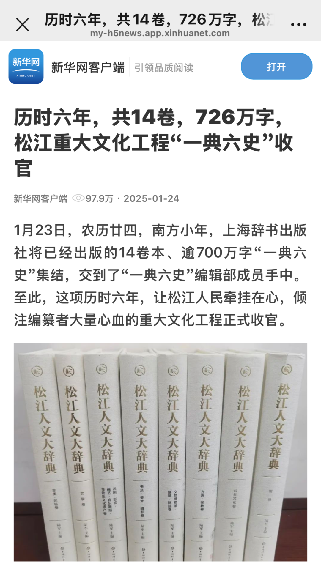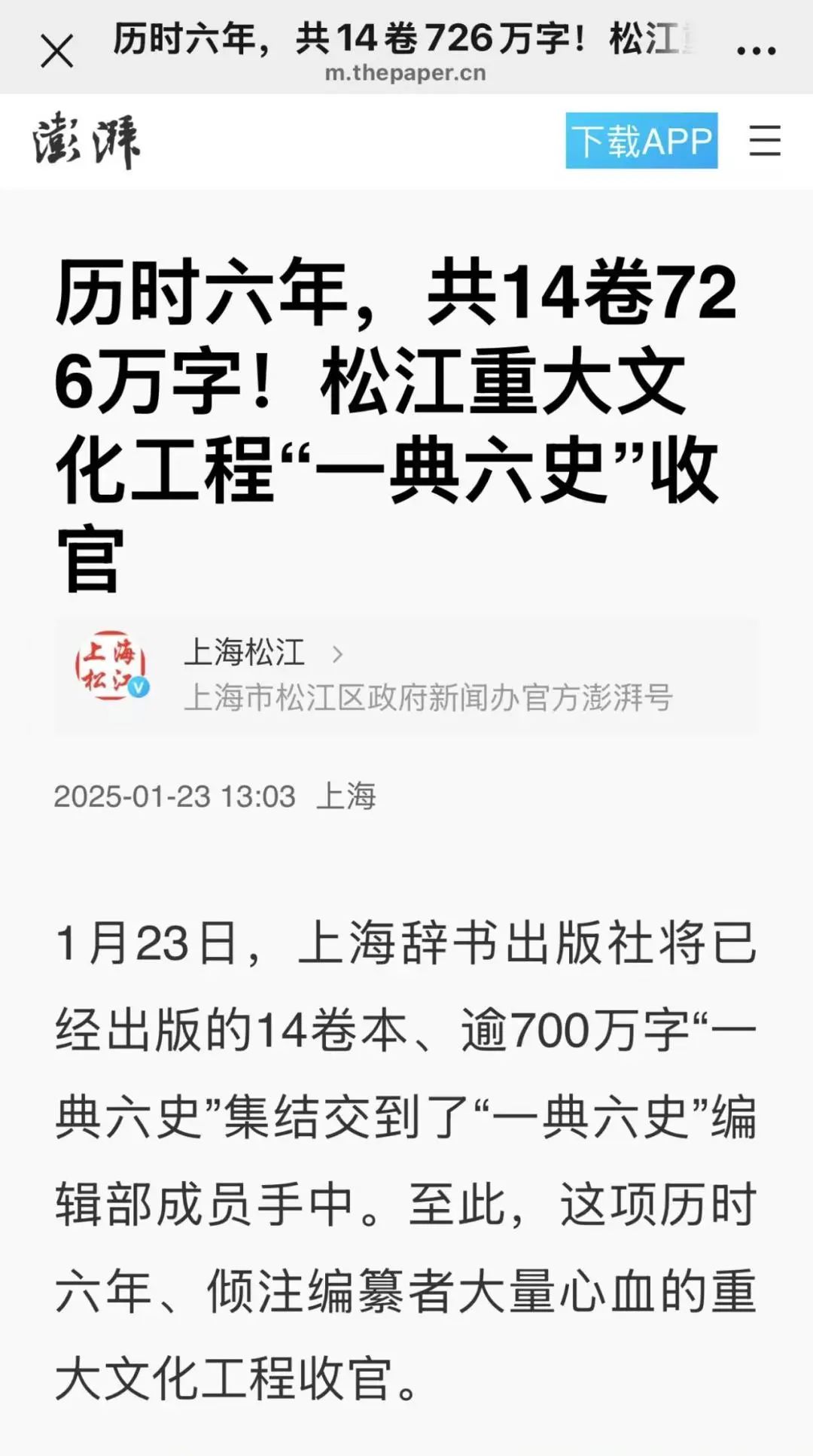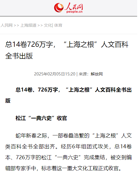 历时六年,共14卷,726万字,松江重大文化工程“一典六史”收官