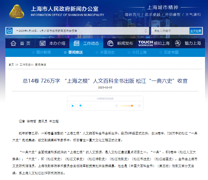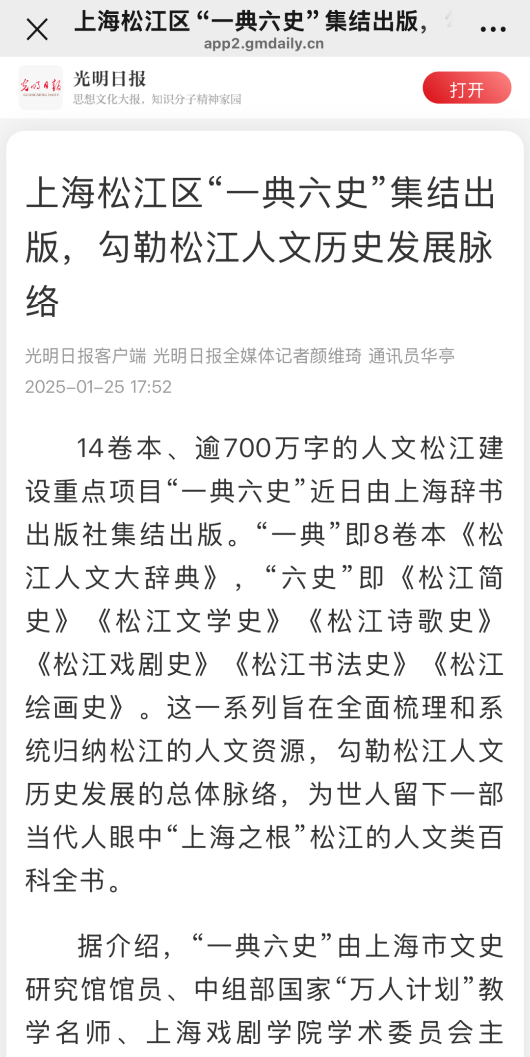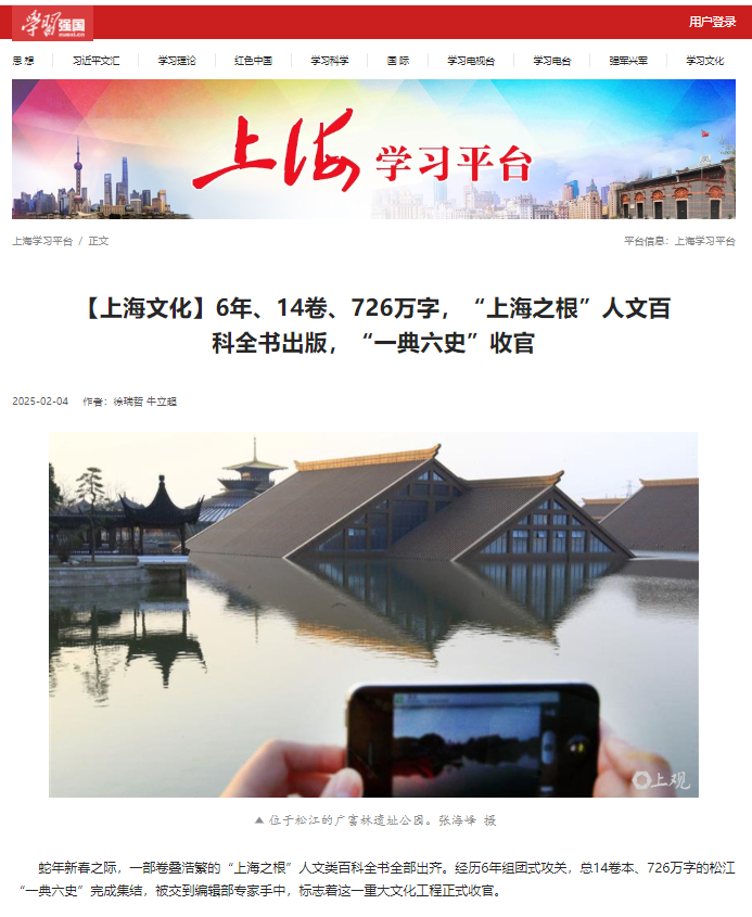 “一典六史”全面梳理和系统归纳“上海之根”的人文资源,是人文松江建设重点项目之一