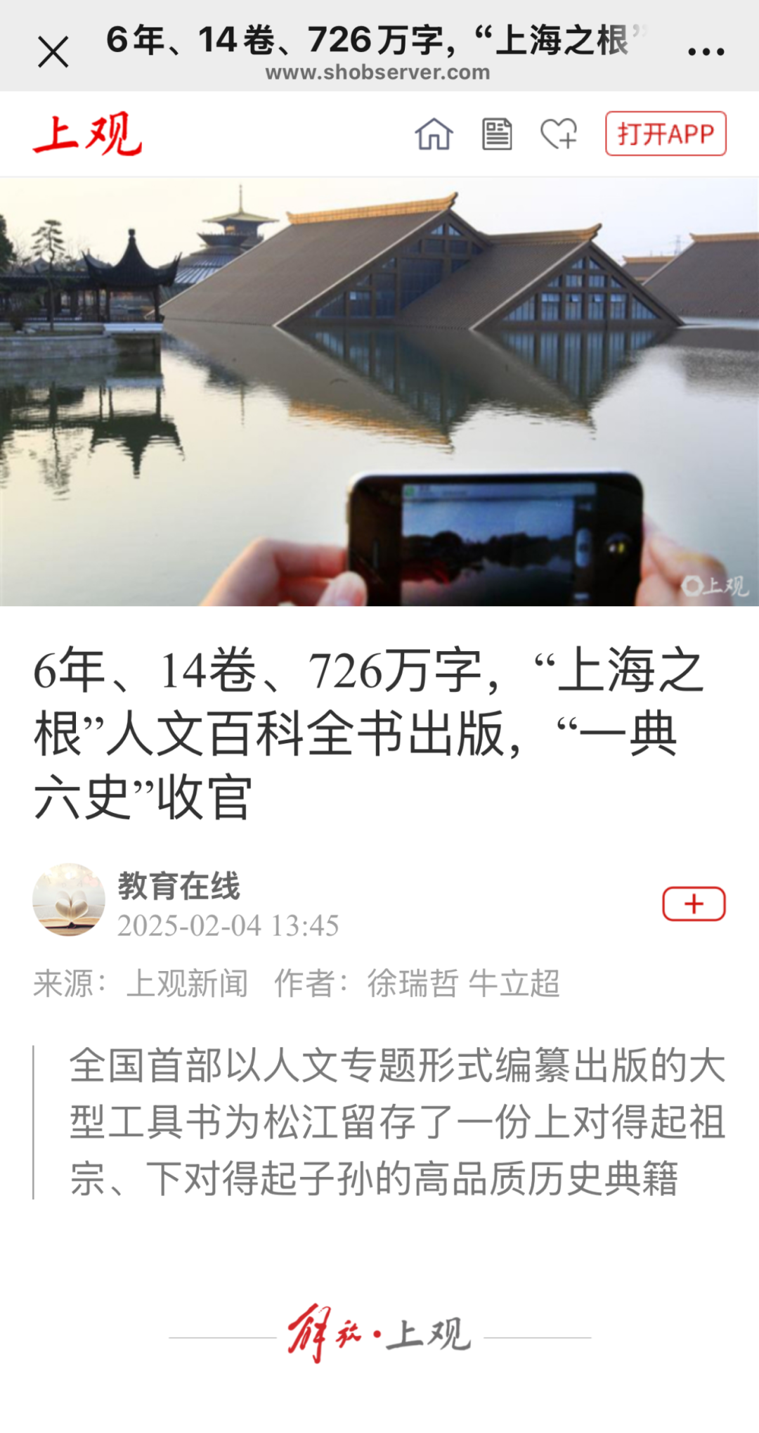全国首部以人文专题形式编纂出版的大型工具书为松江留存了一份上对得起祖宗、下对得起子孙的高品质历史典籍